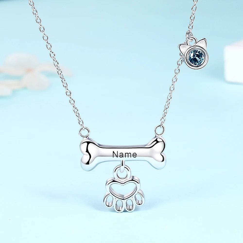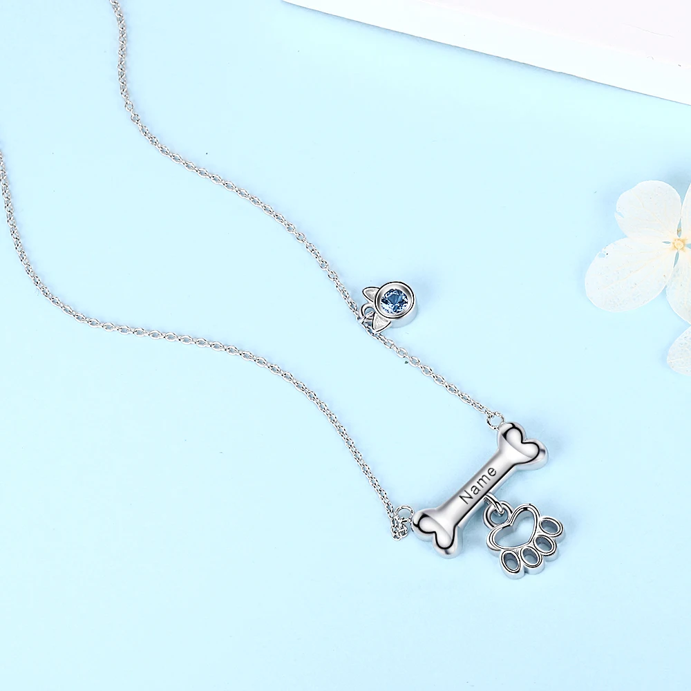 Special Offer Xiaojing925 Collana Con Ciondolo A Zampa Di Osso Di Cane Personalizzato In Argento Sterling Nome Inciso E Gioielli Di Moda Birthstone Per Nave Libera Del Regalo Discount (30%OFF) Today!