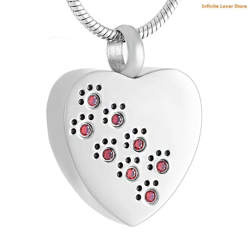 Special Offer IJD8383 Commercio All'ingrosso Carino Zampa Di Stampa Con Cuore Di Cristallo Pet Dog/Cat Cremazione Urna Collana Cenere Monili Memorial Discount (5%OFF) Today!