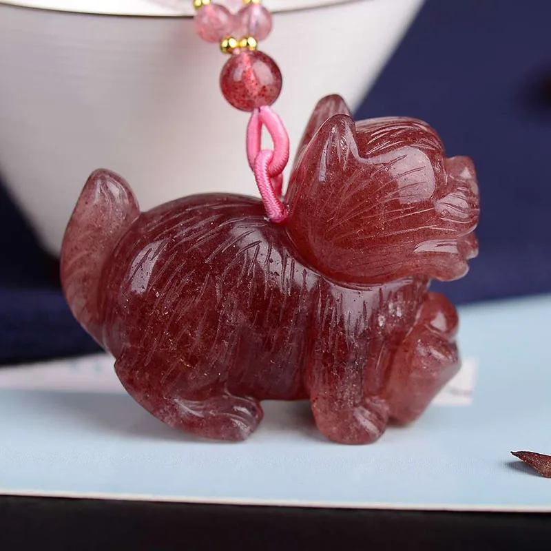 Product Name: Commercio All'ingrosso Fragola Pendenti In Cristallo Naturale Intagliato A Mano Cane Catena Del Maglione Del Pendente Della Collana Fortunato Per Le Donne Degli Uomini Ricchezza Gioielli