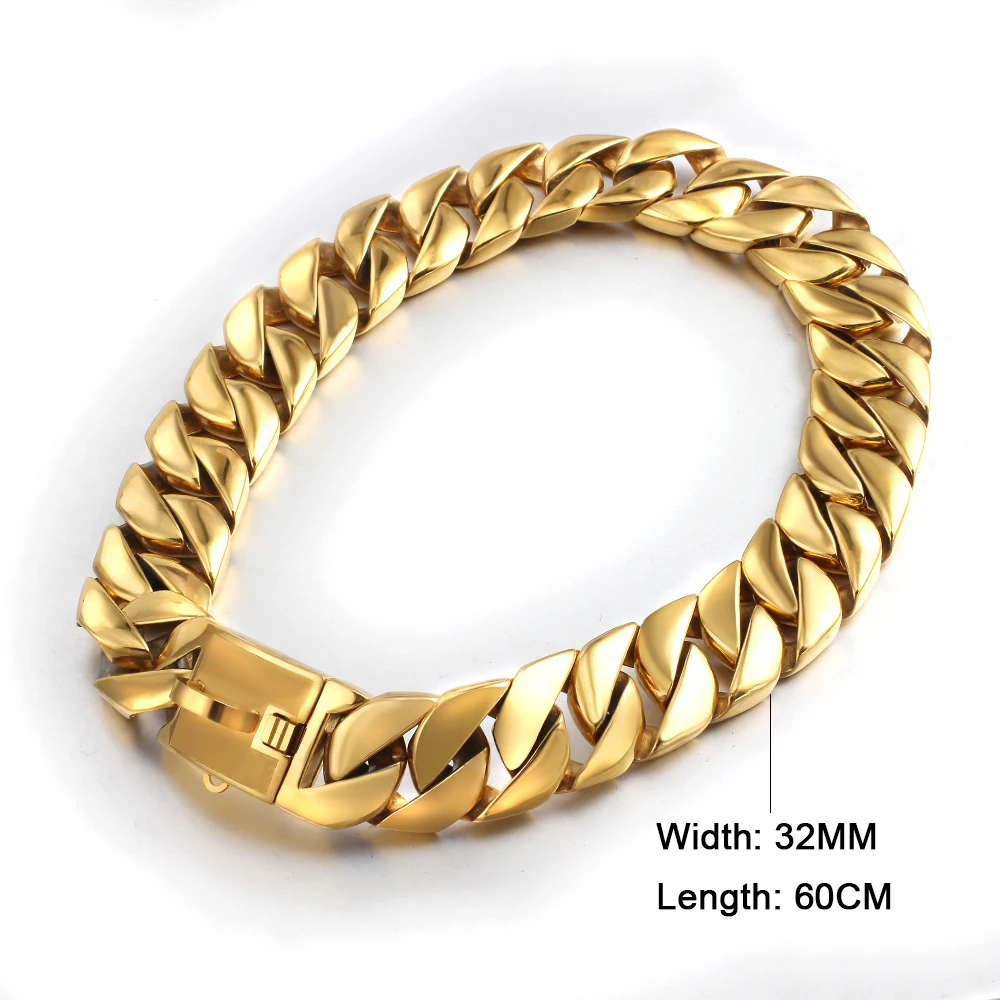 Special Offer Catena A Maglia Cubana Hip-Hop Con Collare Per Cani Dorato Largo 32mm Per Girocollo Impermeabile Per Animali Domestici In Acciaio Inossidabile 316L Pitbull Bulldog Discount (16%OFF) Today!