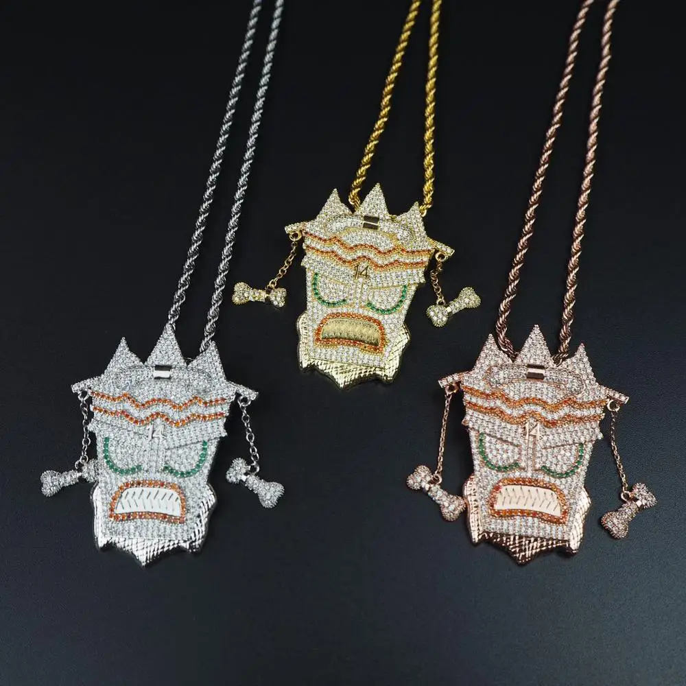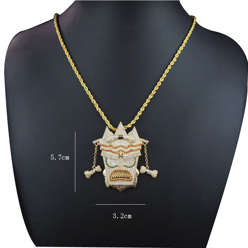 Product Name: 1 Nuovo Stile Hip-hop Collana Con Ciondolo Testa Di Cane Per Uomo AAAA Zircone Intarsiato Heavy Industry Street Hipster Accessori Collana