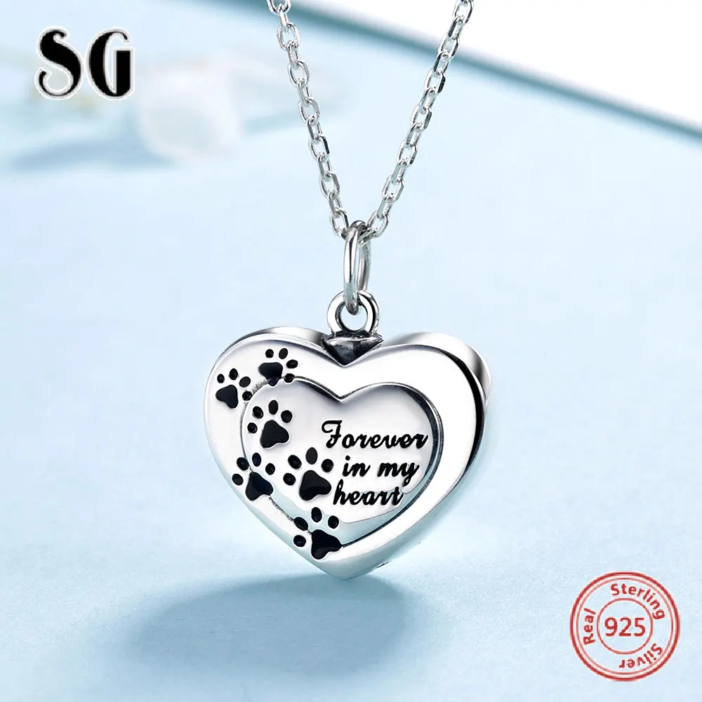 Product Name: SG Argento Sterling 925 Cremazione Commemorativa Cane Da Compagnia Ceneri Cuore Ciondolo Collane A Catena Per Le Donne Gioielli All'ingrosso Regalo
