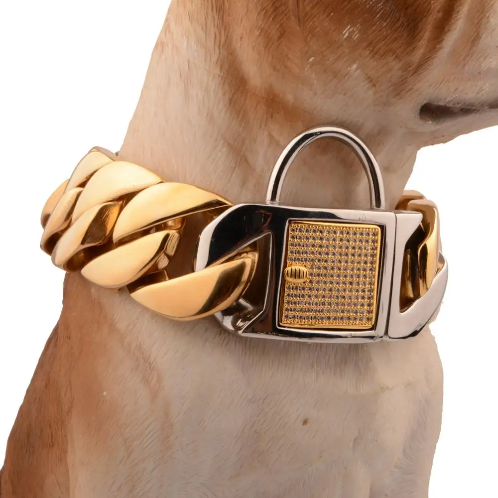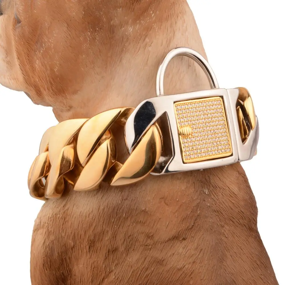 Product Name: Oro Di Colore Collare Di Cane 30 Millimetri In Acciaio Inossidabile Di Alta-end Personalizzato Pet Collana Del Collare Per Le Piccole Medie Cani Di Taglia Grande