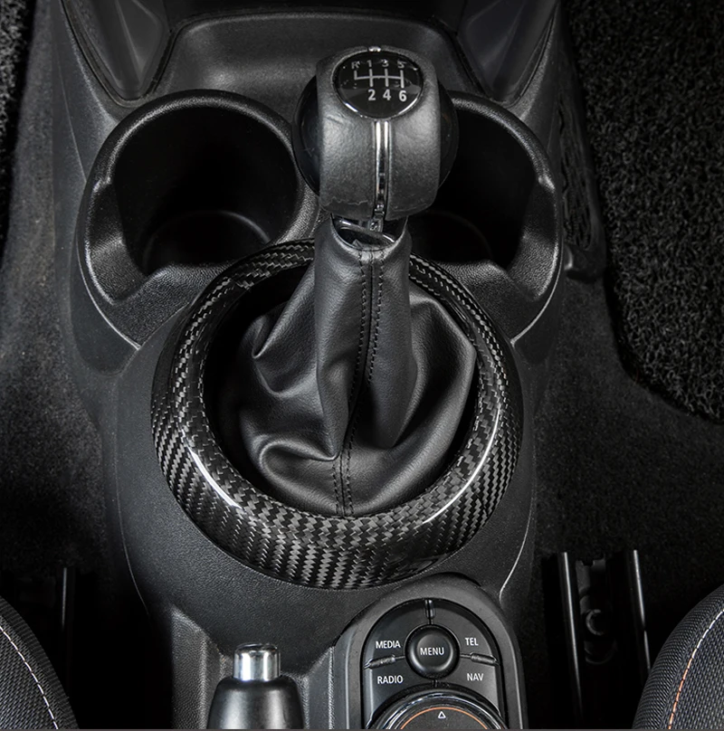 Product Name: Posizione Della Leva Del Cambio In Fibra Di Carbonio A Secco Di Polvere Anello Di Copertura Di Parti Interne Per F54 F55 F56 F57 F60