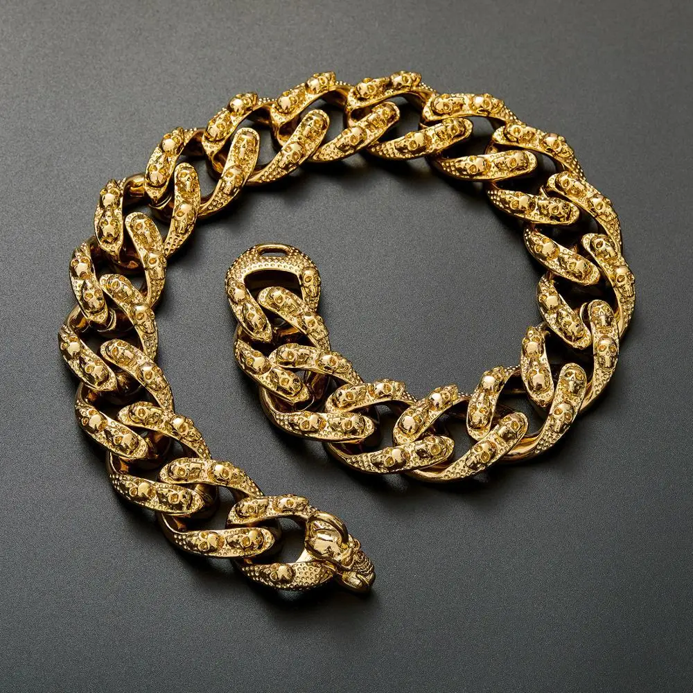 Special Offer AZ 30mm Larghezza Grande Colore Oro Retro Teschio Acciaio Inossidabile 316L Cane Da Compagnia Catena A Maglie Cubane Catena Di Addestramento A Maglie Metalliche Forti Discount (5%OFF) Today!