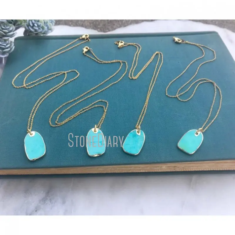 Special Offer NM14796 10 Pezzi Collana Di Turchesi Turchesi Minimalisti Fetta Delicata Piastra D'oro Turchesi Grezzi Medaglietta Per Cani Regalo Boho 18 Pollici-32 Pollici Discount (5%OFF) Today!