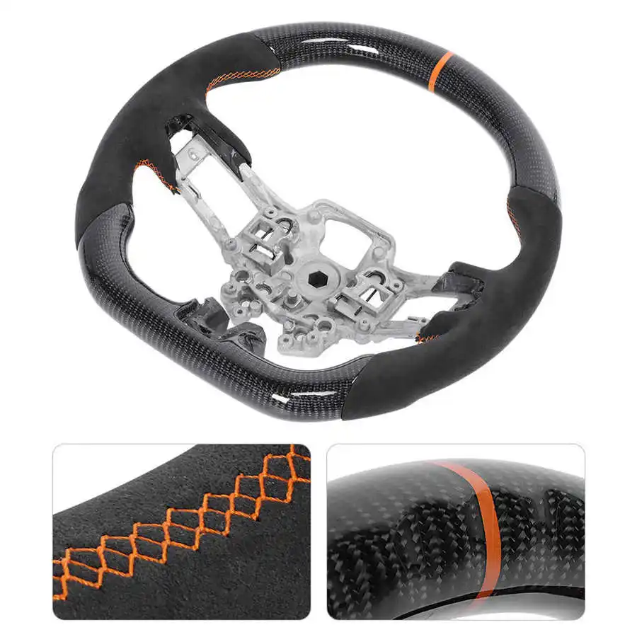 Special Offer Volante In Fibra Di Carbonio Scamosciato Con Cuciture Arancioni 12 O-clock Ring Adatto Per Ford Mustang EcoBoost/GT/Shelby GT350 Discount (49%OFF) Today!