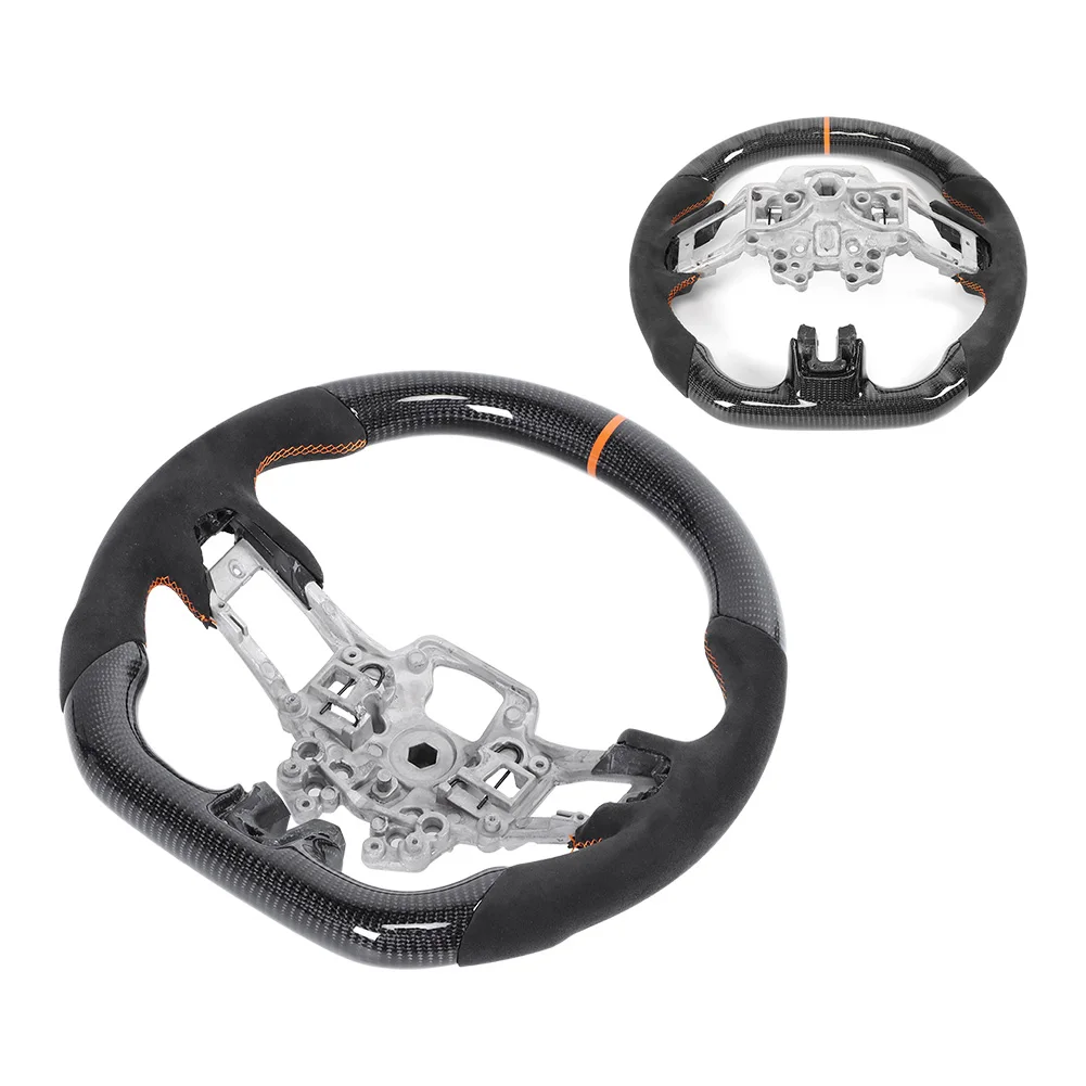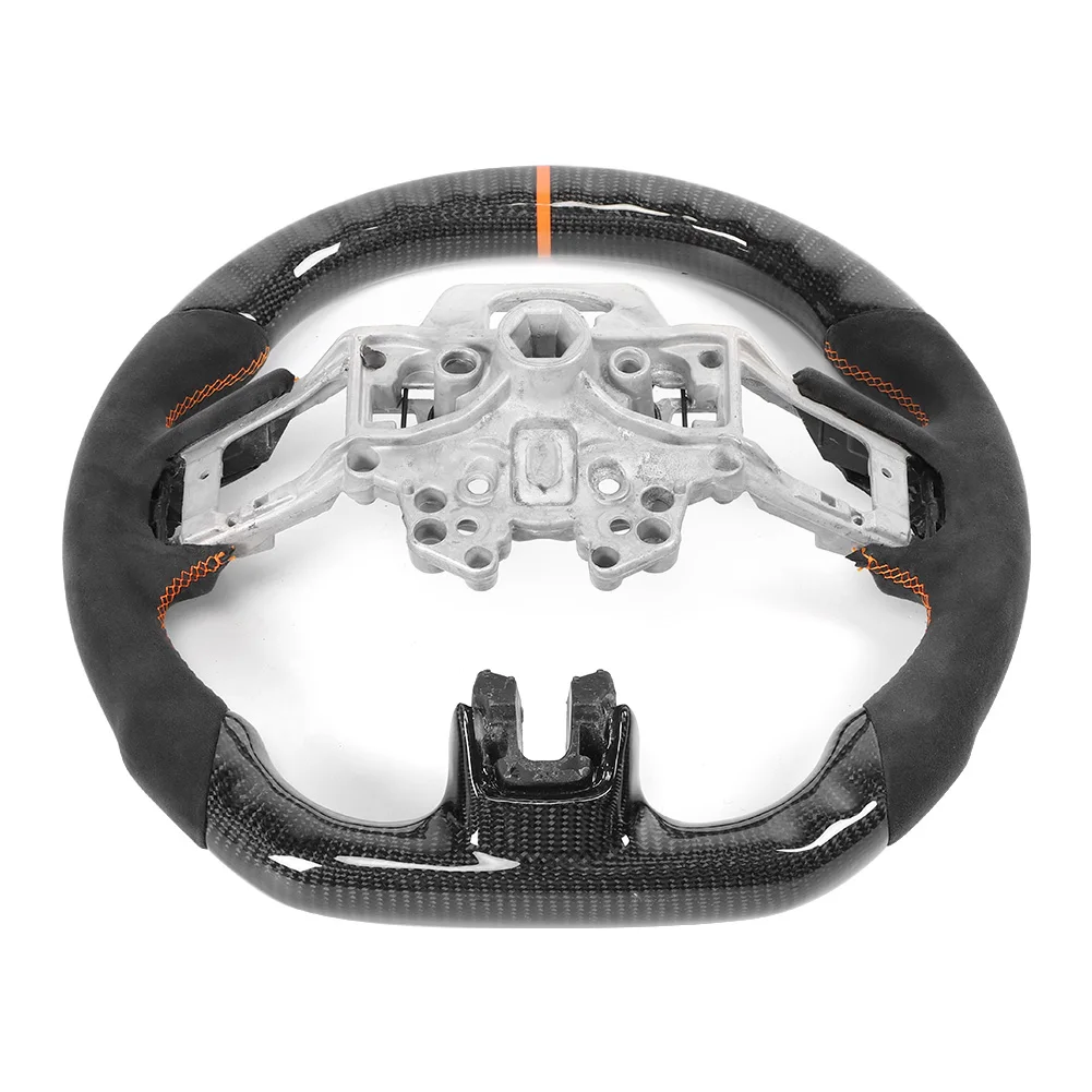 Product Name: Volante In Fibra Di Carbonio Scamosciato Con Cuciture Arancioni 12 O-clock Ring Adatto Per Ford Mustang EcoBoost/GT/Shelby GT350
