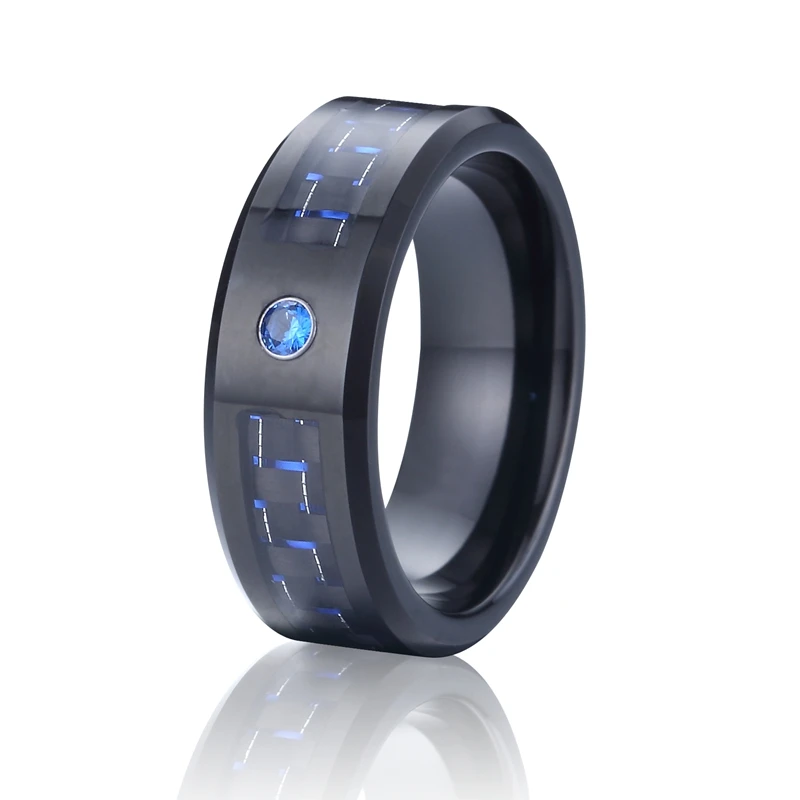 Special Offer Commercio All'ingrosso Nero Fascia Di Cerimonia Nuziale Blu In Fibra Di Carbonio Carburo Di Tungsteno Anelli Per Gli Uomini E Le Donne Con La Pietra Discount (20%OFF) Today!