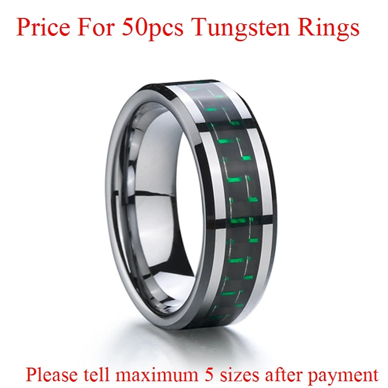 Product Name: Quantità All'ingrosso All'ingrosso 50 Pezzi Anello In Tungsteno Verde In Fibra Di Carbonio Da Uomo