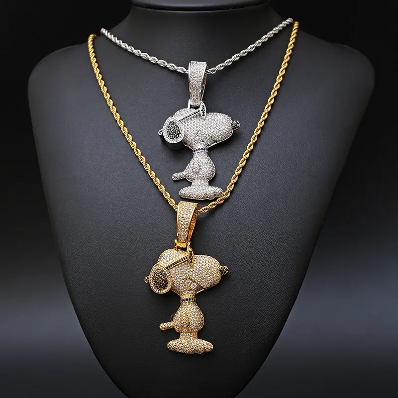 Product Name: 1 Nuovo Hip Hop Artiglio Impostazione AAA + CZ Pietra Girocollo Rock Bling Ghiacciato Cartone Animato Snoop Cane Pendenti Collane Per Uomo Rapper Gioielli