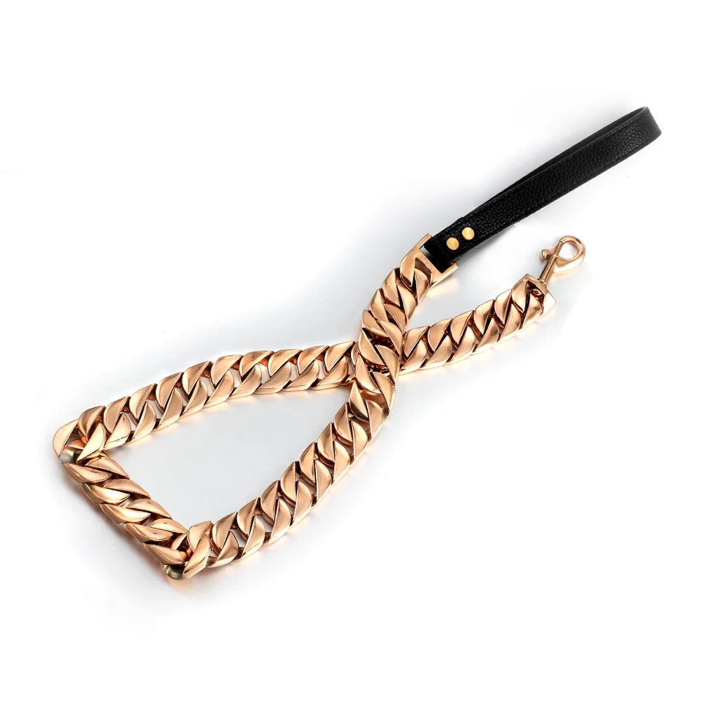 Product Name: Per Collare A Catena Per Cani Di Taglia Piccola E Media Grande Guinzaglio Maniglia In Pelle PU Metallo Collana In Acciaio Inossidabile Controllo Di Sicurezza Regolabile