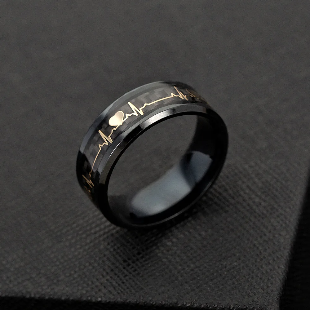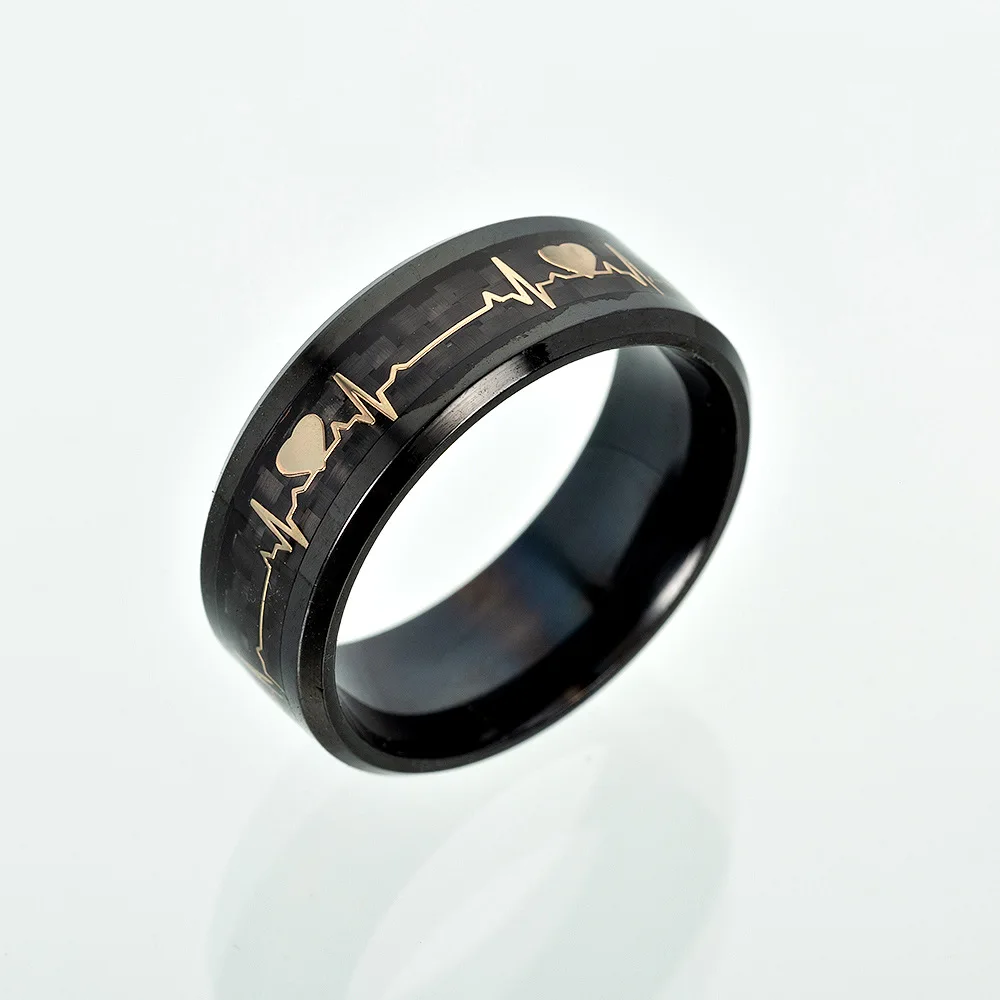Product Name: Speciale Transfrontaliera Per Anelli Di Coppia ECG Fatti A Mano, Popolari Anelli Di Coppia Di Gioielli Europei E Americani In Fibra Di Carbonio