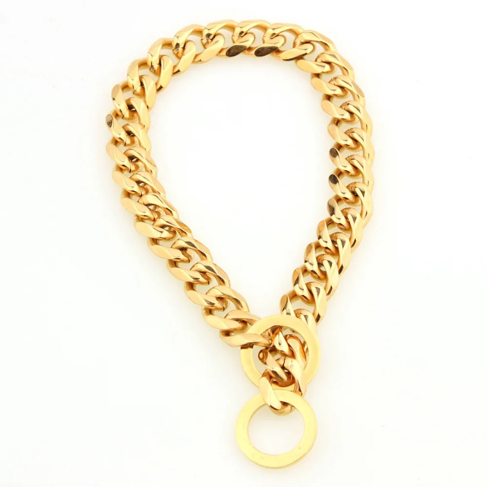 Product Name: 10/12/15/17/19mm Tono Oro Taglio Cordolo Link Collare A Catena Per Cani In Acciaio Inossidabile 316L Personalizza Dimensioni Gioielli Regalo All'ingrosso