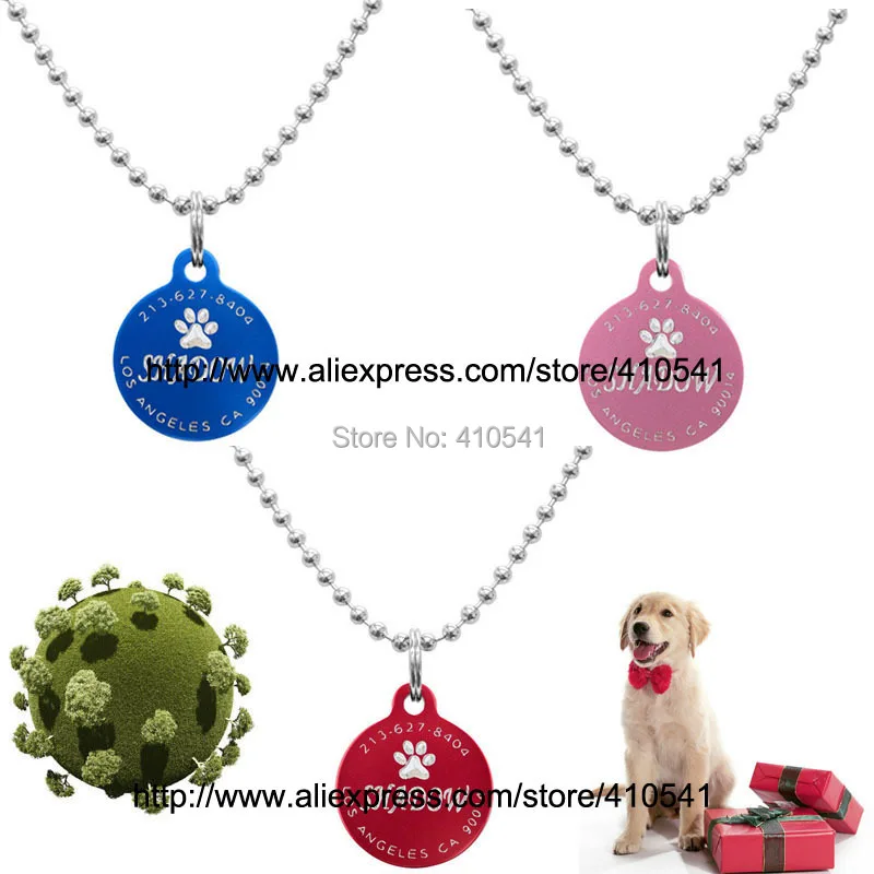 Product Name: Nuovo Arrivo Pet Products 30*30 MM 200 Pz/lotto Rotonda A Forma Di Tag Pet Puppy Dog Cat ID Tag Con Catena Della Sfera Spedizione Gratuita