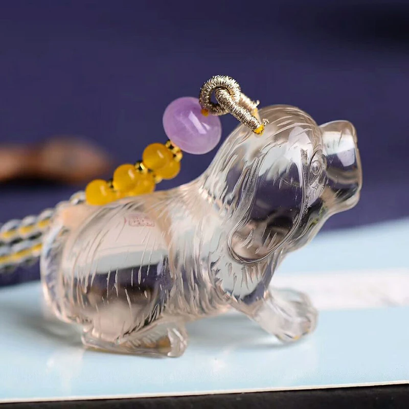 Product Name: Commercio All'ingrosso Giallo Cristallo Naturale Pendenti Intagliato A Mano Meng Cane Catena Del Maglione Del Pendente Collana Di Lucky Per Gioielli Uomini Donne Regalo