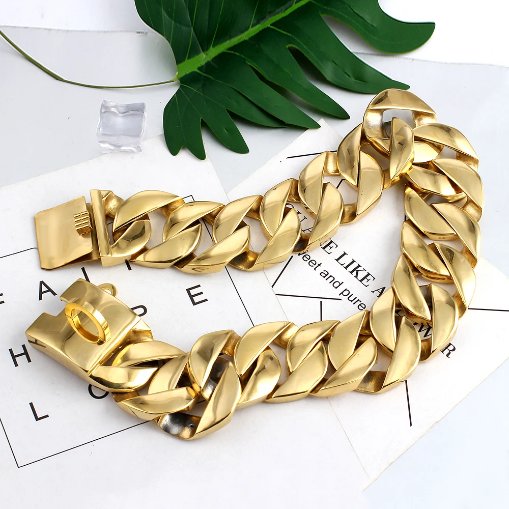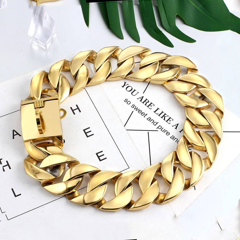 Special Offer 52MM Catena Per Cani A Maglia Cubana Con Cordolo Taglio Forte Catena In Acciaio Inossidabile 316L Tono Oro Catene Per Cani Collare Per Animali Collana Girocollo All'ingrosso Discount [NEW!!] Today!