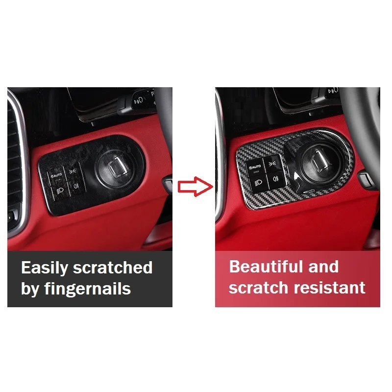 Product Name: Modifica Interna Di Porsche New Cayenne, Telaio Interruttore Faro In Fibra Di Carbonio, Per Cayenee Avviare L'anello Decorativo 2018-2020