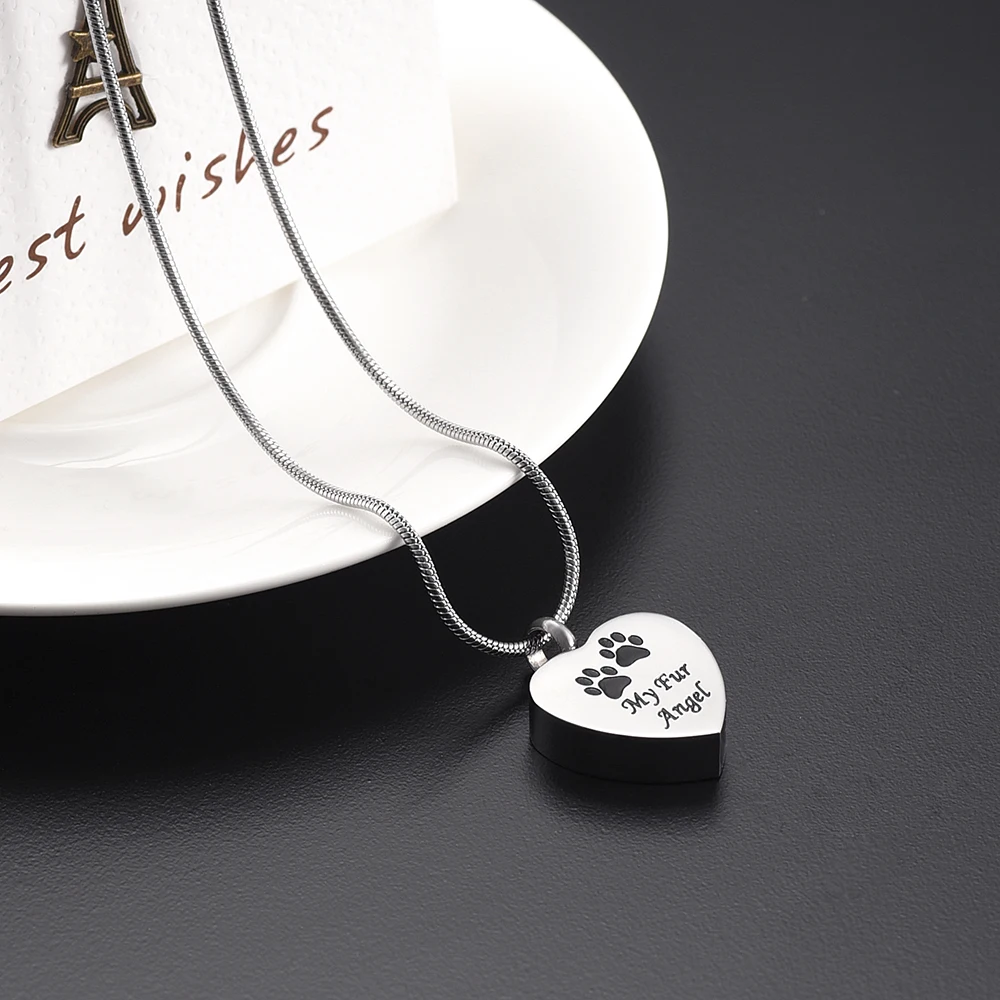 Product Name: KLH9095-9 Inciso "Il Mio Pelliccia Angelo, Doppio Zampa "Cremazione Del Pendente Del Cuore Per Il Cane/Gatto Ceneri Holder-Memorial Gioielli Per Pet Perdita Di