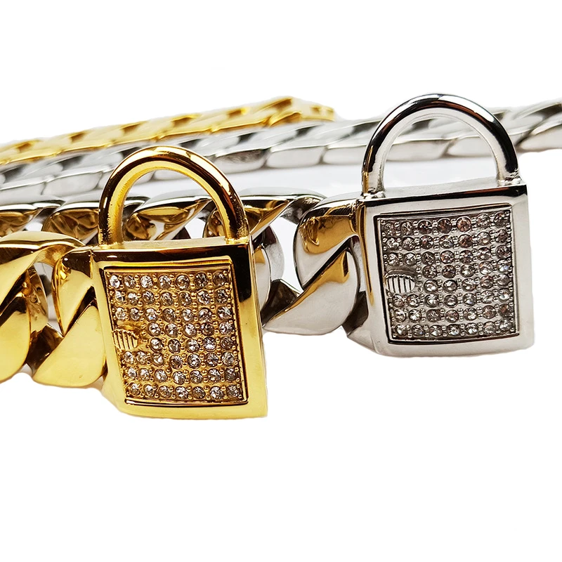 Product Name: Lusso Diamante Catena Cubana Bully Collare Cane Pet Acciaio Inossidabile 32mm Pitbull Bulldog Collana Di Strass Francese Di Alta Qualità