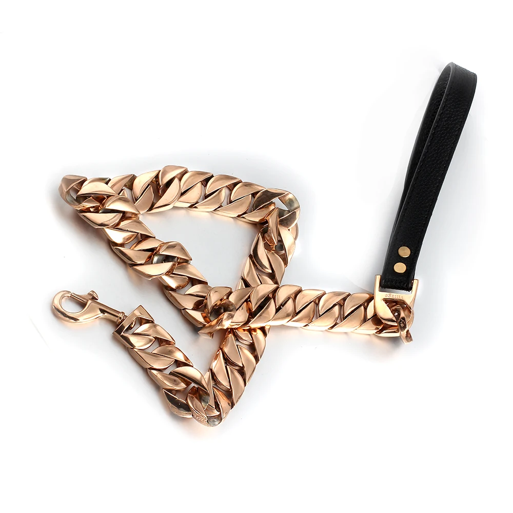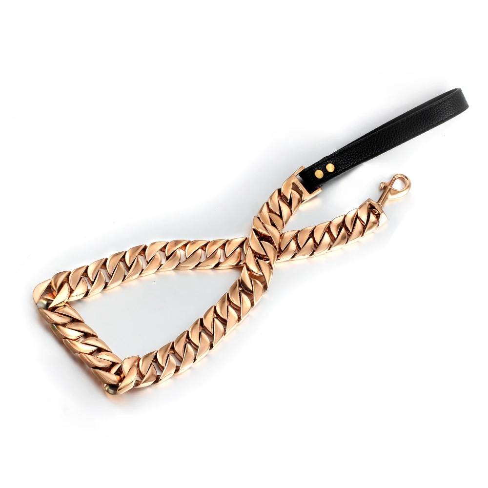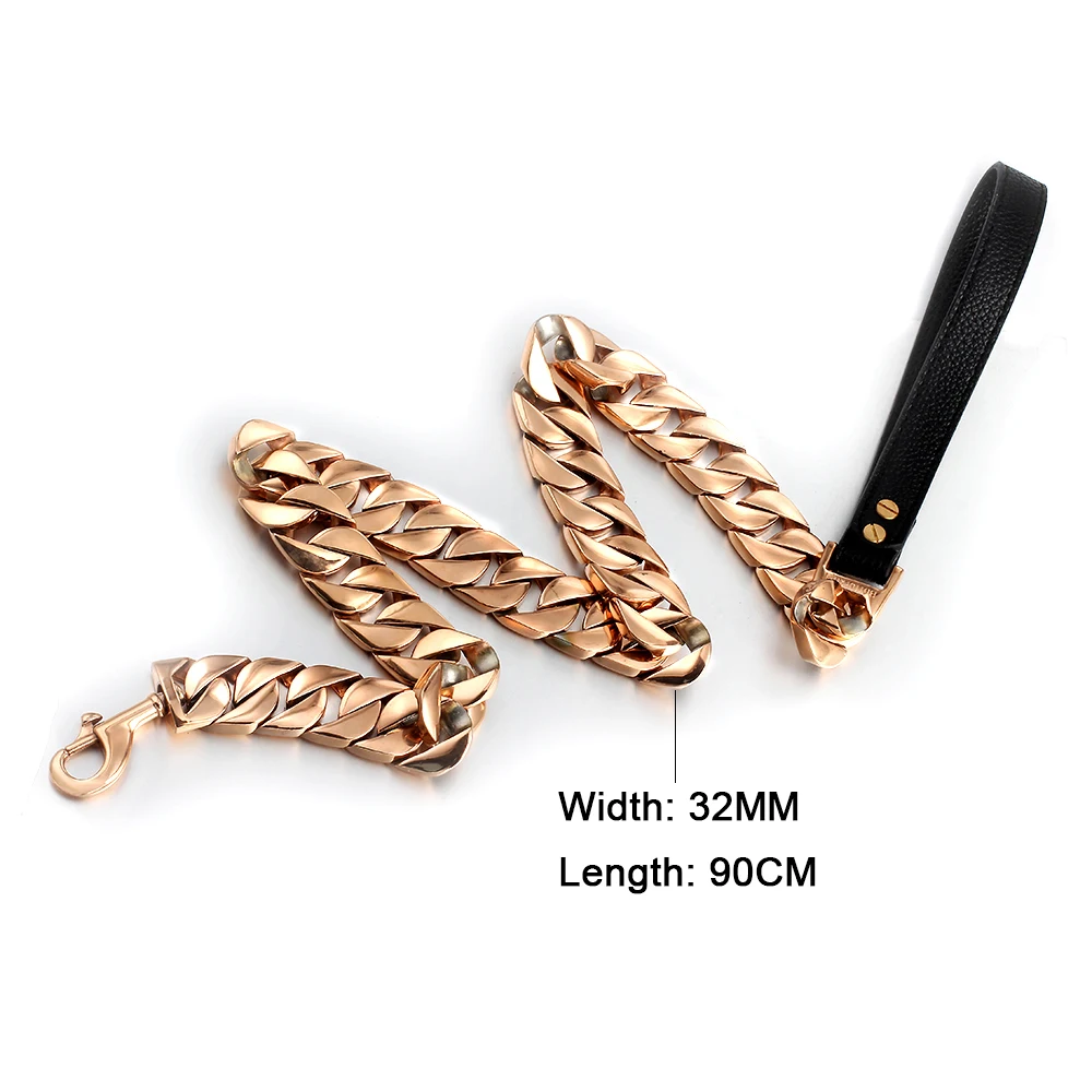 Product Name: Metallo Pet Catene In Acciaio Inox Guinzaglio Del Cane Catena In Acciaio High-End Personalizzato Mostra Di Cuoio Manico Bullo Cani Doberman Trazione Collane