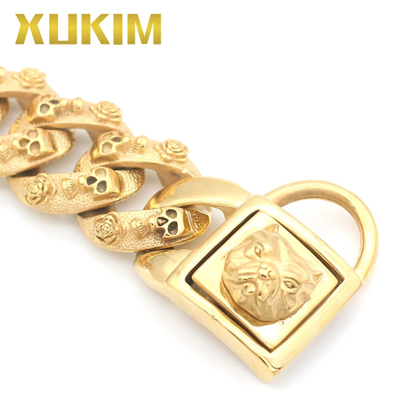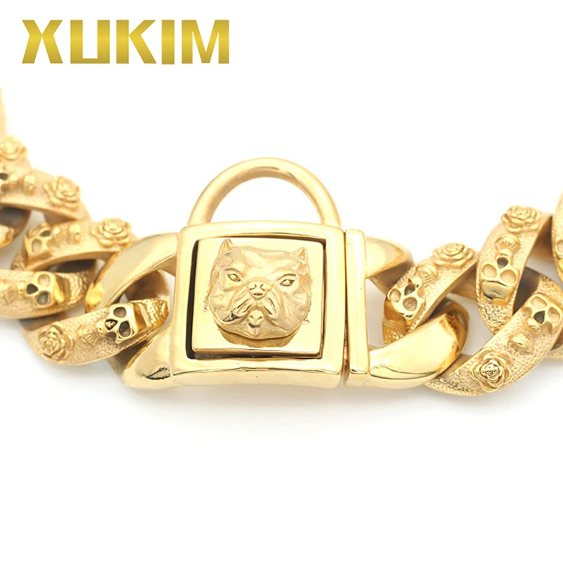 Special Offer Xukim Monili Bull Bully Catena Del Cane 316L In Acciaio Inox Placcatura In Oro Del Cranio Punk Gotico Collana Dell'animale Domestico Regalo Per I Cani Da Compagnia Discount (16%OFF) Today!